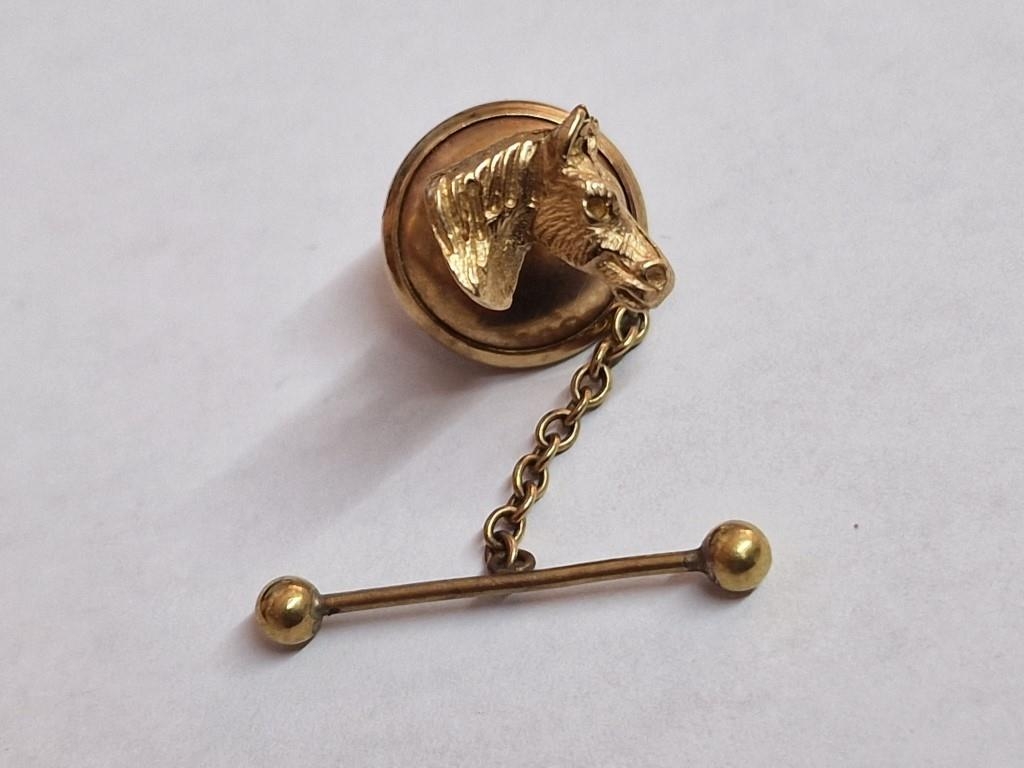 Vintage 9ct Gold Gentleman's Horses Head Tie Pin, (Approx. 2.8g)