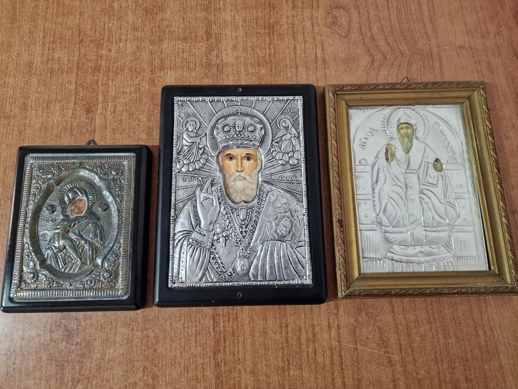 3 x Icons; Including .950 Silver Relief and 2 x White Metal Others, (Approx. Max. 22 x 17cm), (3)