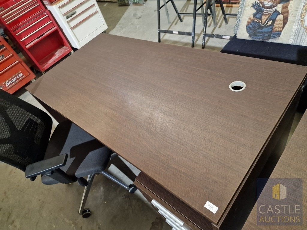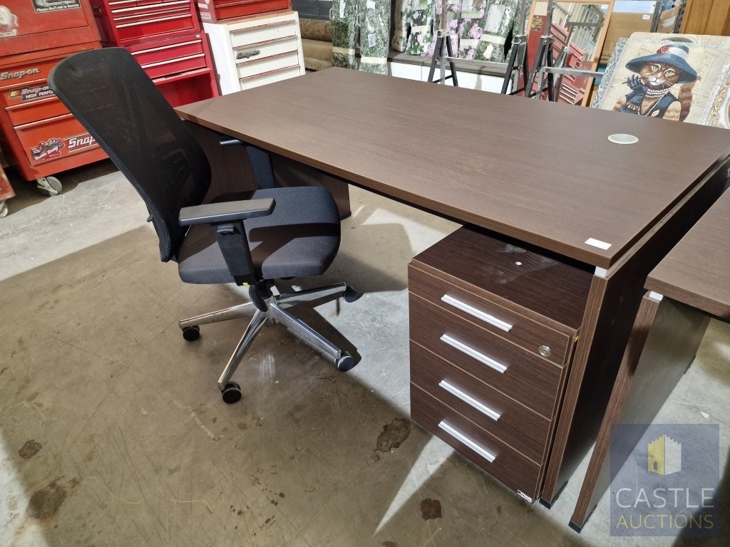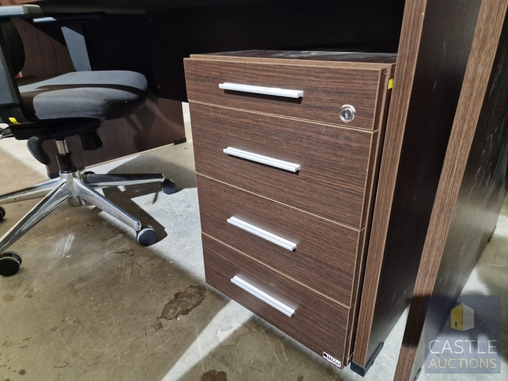 Modern Wenge Colour Rectangular Office Desk, Together with 4-Drawer Pedestal / Drawer Unit and Black Colour Office Chair, (Approx. 160 x 80cm), (3)