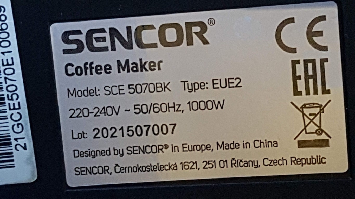 SENCOR Coffee Maker, Model: SCE 5070BK (Untested), Together Stainless Steel and Glass French Press Coffee and Tea Maker, (2) * Basic Test & Powers On *