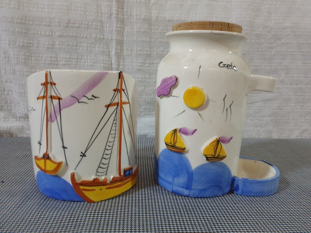 2 x Hand Painted Ceramic Souvenirs From Crete. A/F.