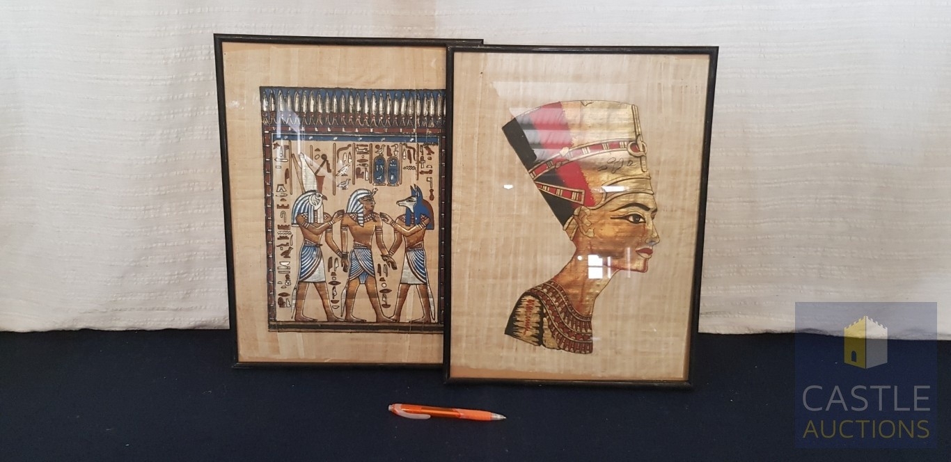 2 x Papyrus Framed Paintings, Depicting Queen Nefertiti & A Ritual Egyptian Scene, (Approx. Size 41cm x 31cm)