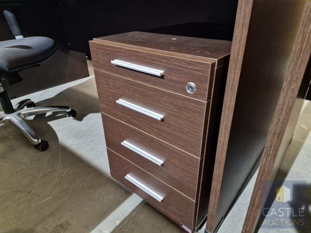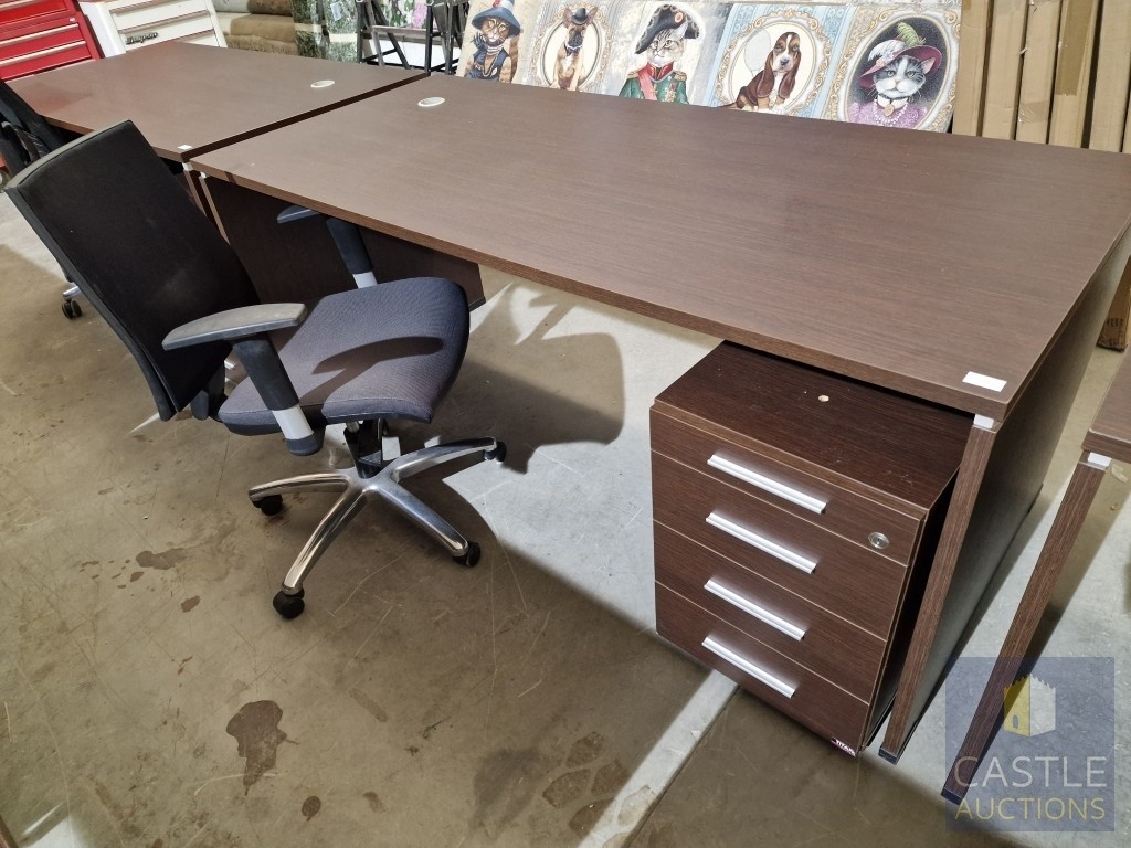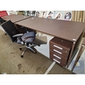 Modern Wenge Colour Rectangular Office Desk, Together with 4-Drawer Pedestal / Drawer Unit and Black Colour Office Chair, (Approx. 180 x 80cm), (3)