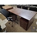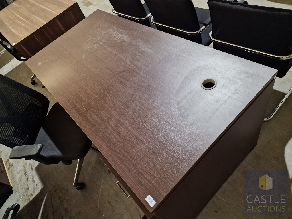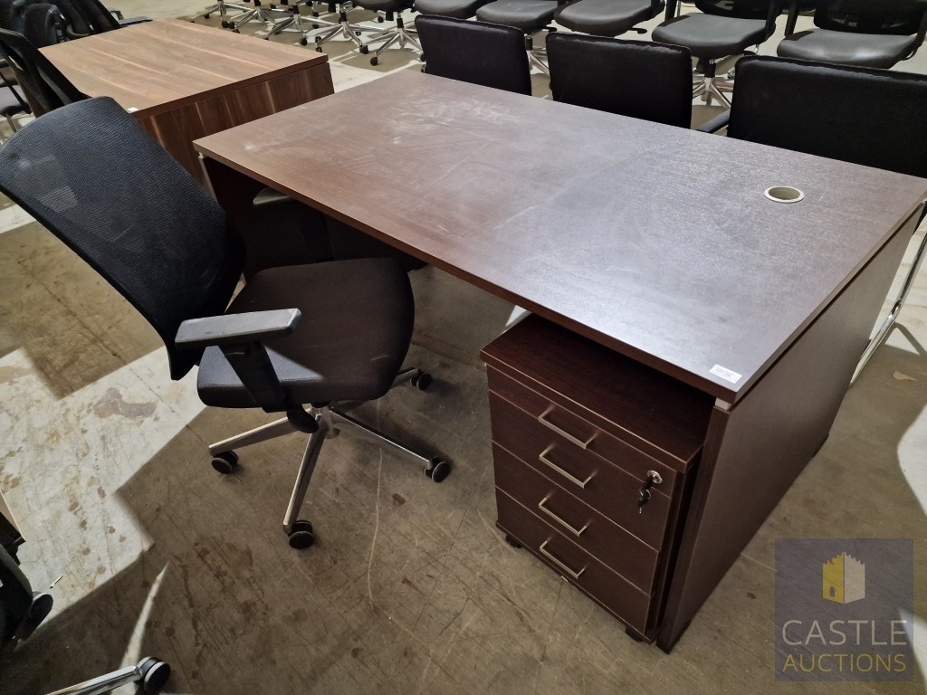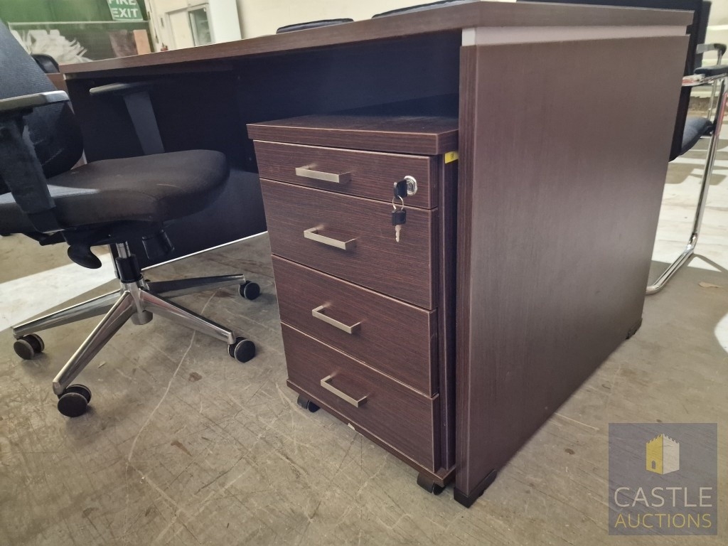 Modern Wenge Colour Rectangular Office Desk, Together with 4-Drawer Pedestal / Drawer Unit and Black Colour Office Chair, (Approx. 160 x 80cm), (3)