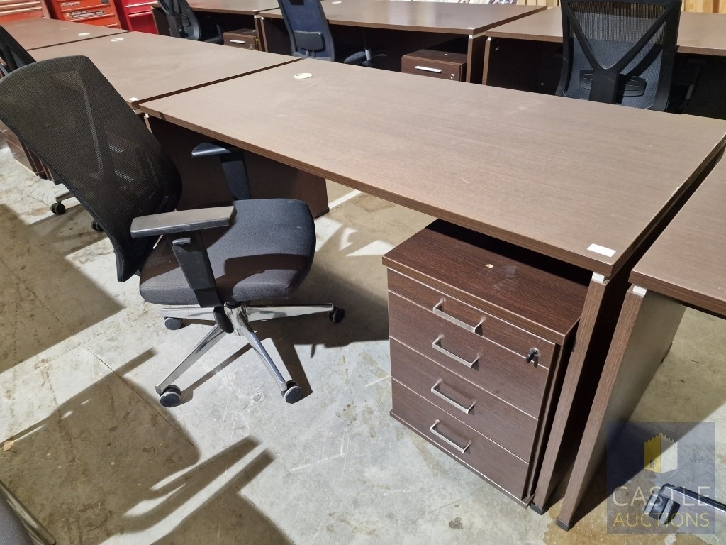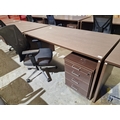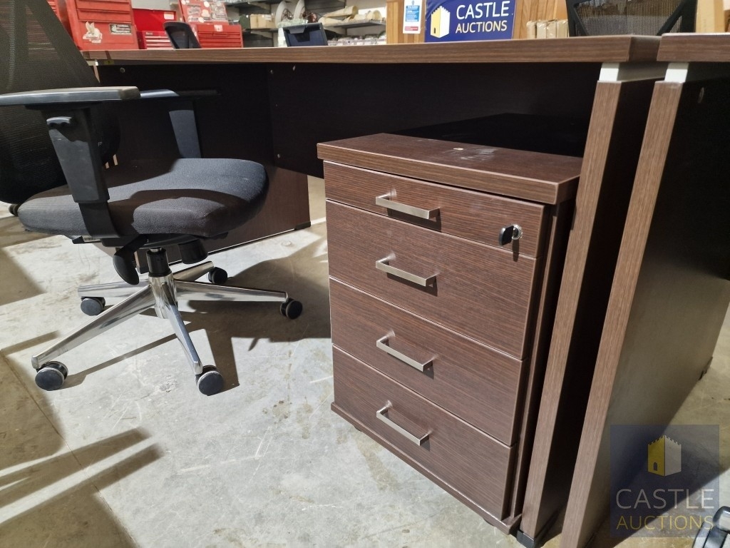 Modern Wenge Colour Rectangular Office Desk, Together with 4-Drawer Pedestal / Drawer Unit and Black Colour Office Chair, (Approx. 160 x 80cm), (3)
