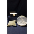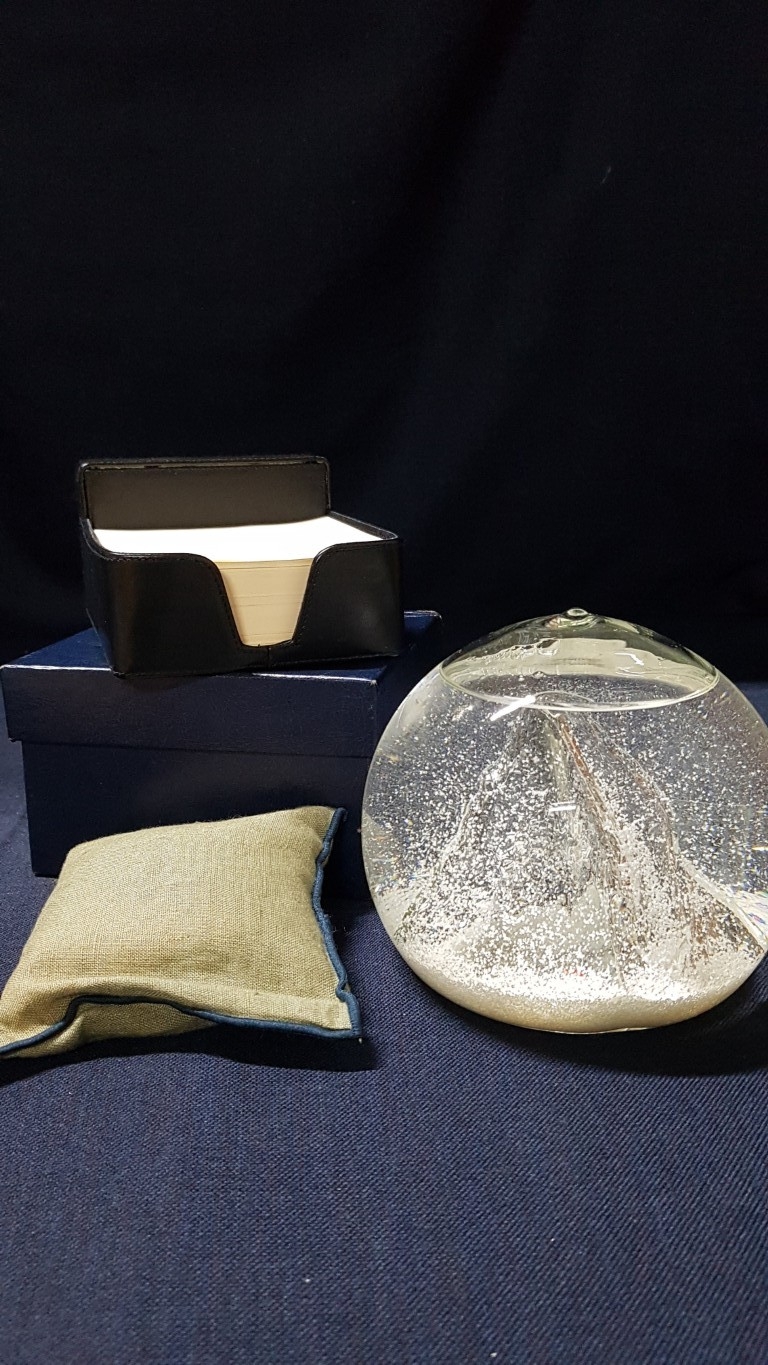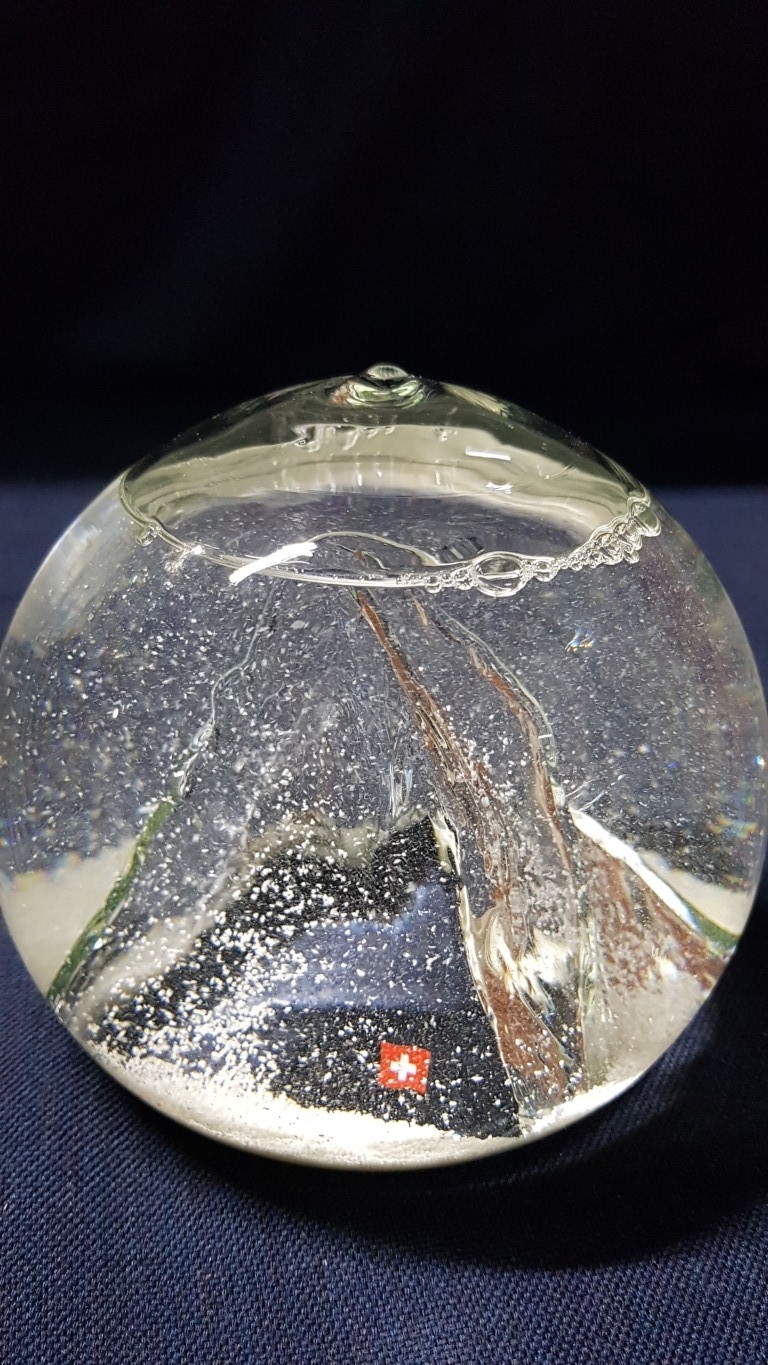 Home Treasures and Accessories; Snowy Matterhorn Water Snow Glob Swiss Alps Souvenir, Small Fragrant Pillow and Black, Leather Effect Memo Cube Holder with Paper. (3)