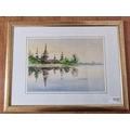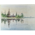 Framed Water Colour Painting of Traditional Building, Likely a Church with Reflection in the Water, Signed Lower Left, (Approx. 44 x 33cm)