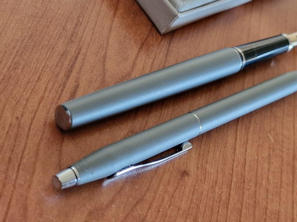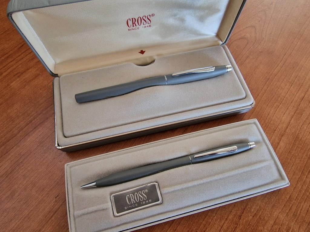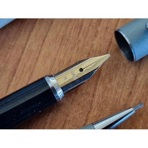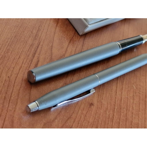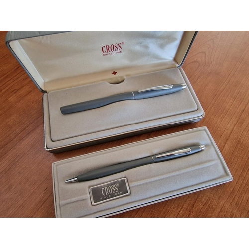 Cross Grey Colour Fountain Pen in Original Case, Together with Matching Grey Cross Propelling Pencil, (Nb. Box Missing Lid), Both Looks Unused, (2)