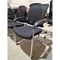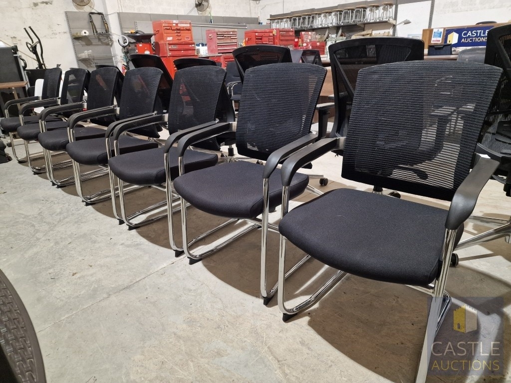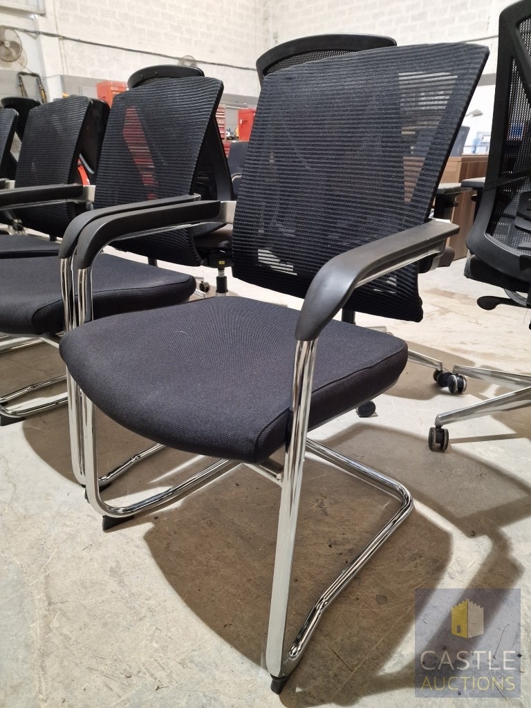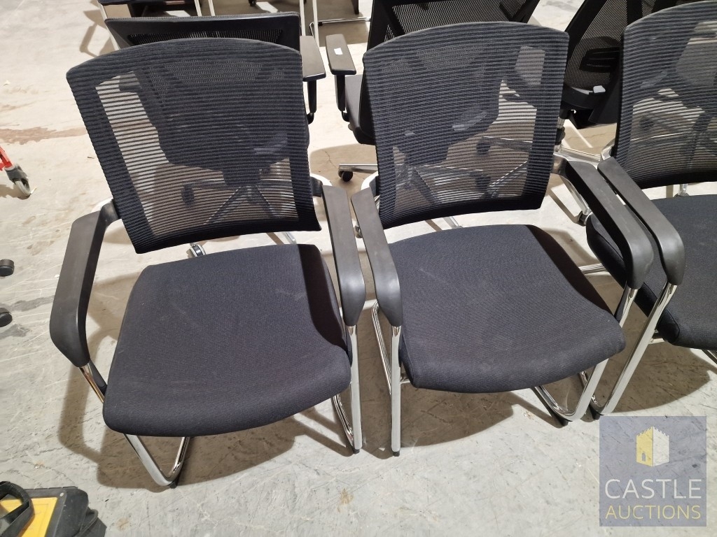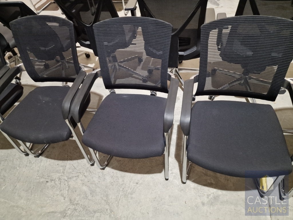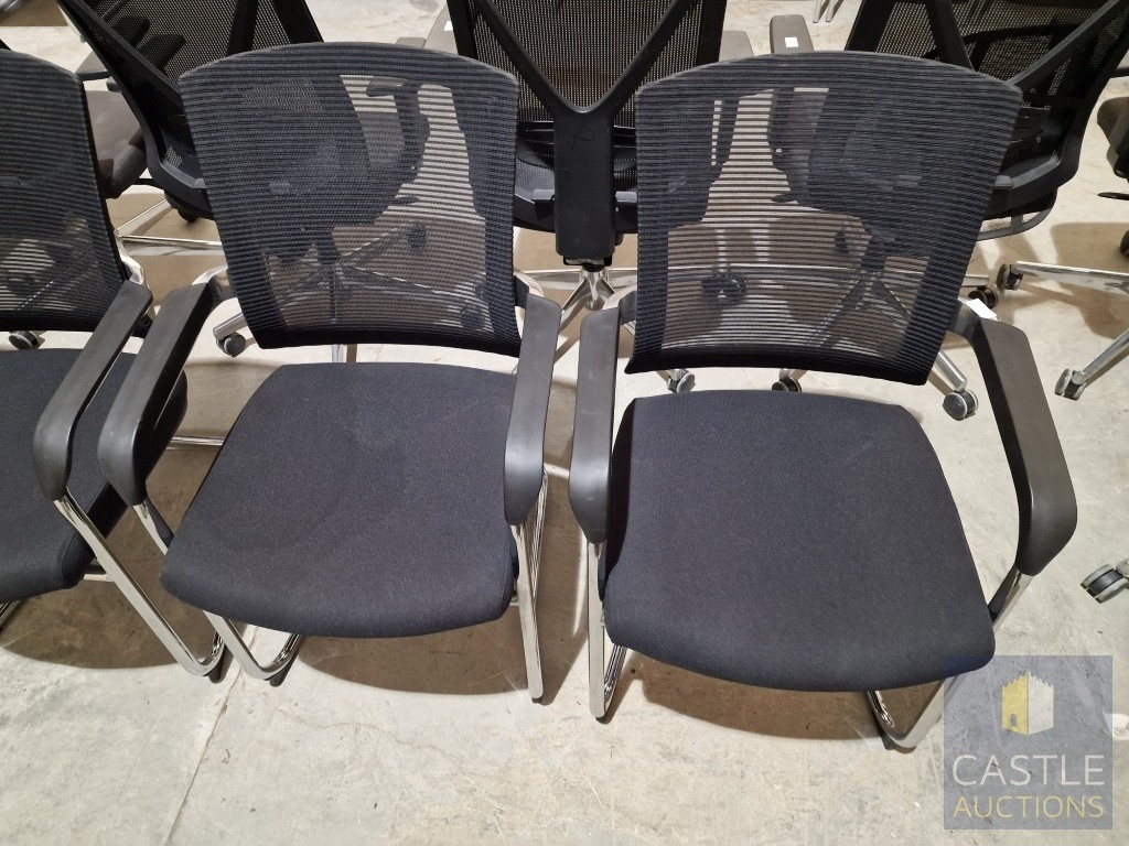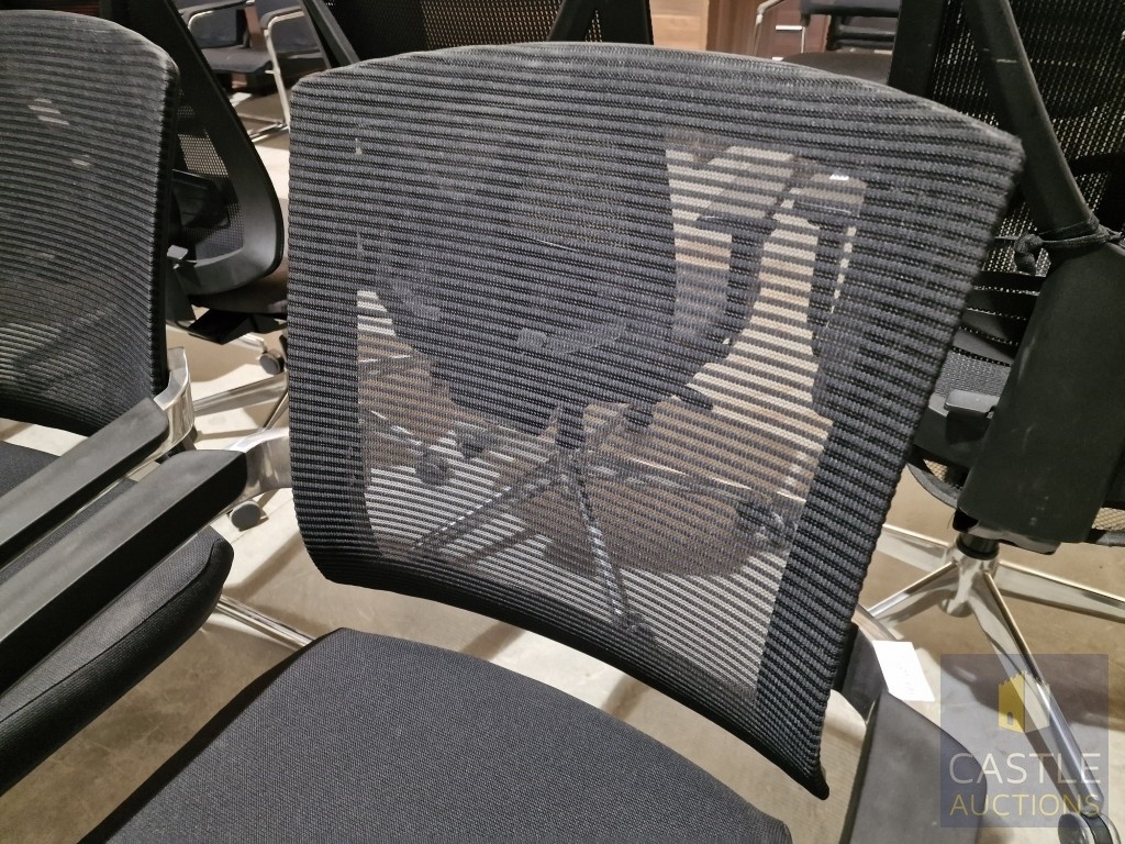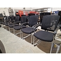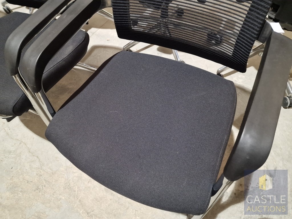 Set of 7 x Black Office Chairs with Arms, Fabric Seats and Mesh Back, Over Chrome Legs, (7)