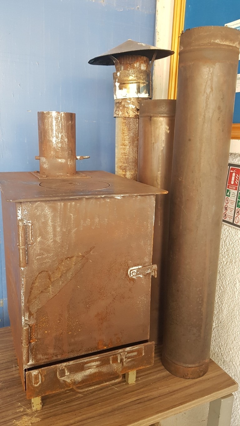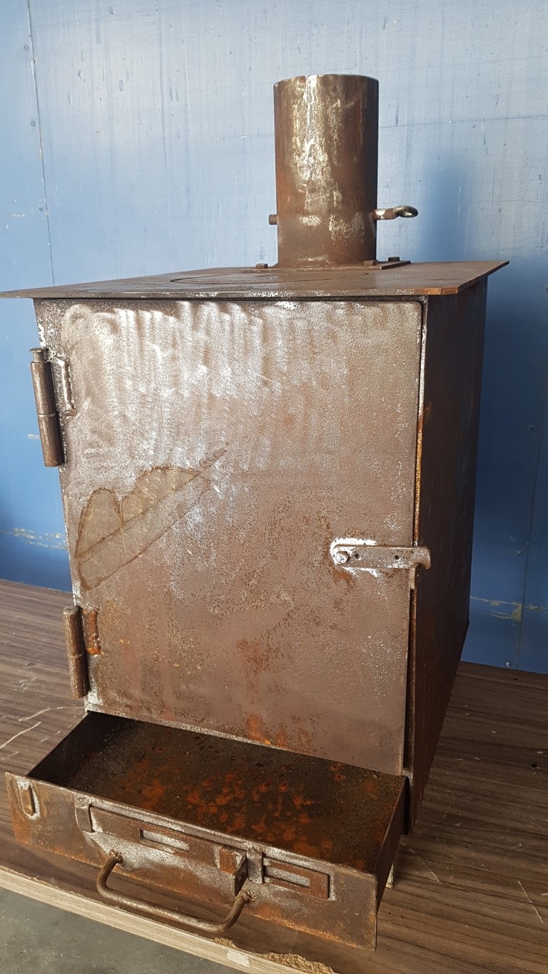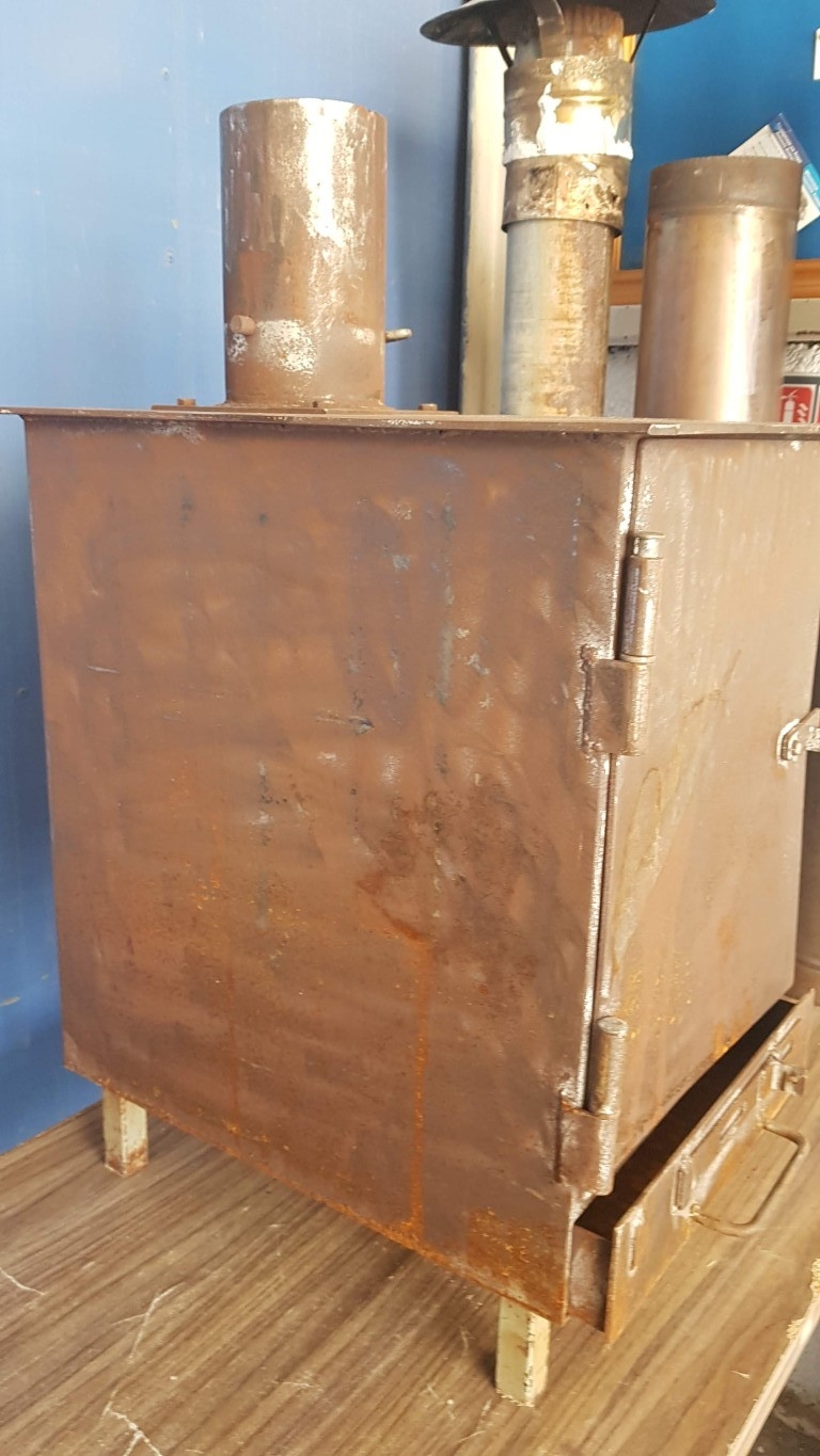 Rustic / Vintage, Classic Metal Wood-Burning Stove (Approx. 40cm x 50cm x 60cm), Together Pipes - Chimney Parts (Approx. L: 100cm/L: 85cm/ L: 105cm).
