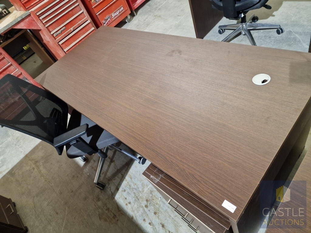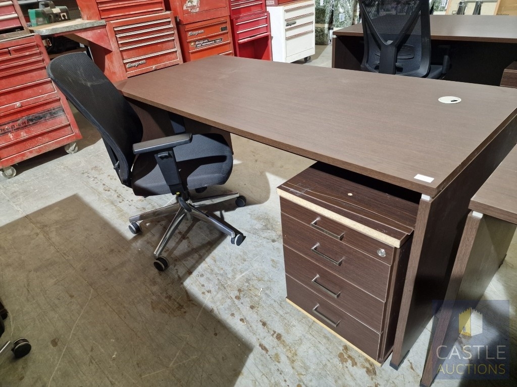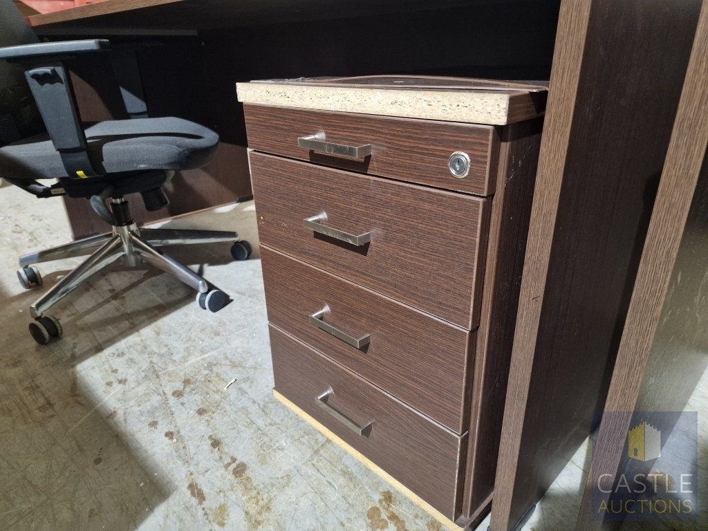 Modern Wenge Colour Rectangular Office Desk, Together with 4-Drawer Pedestal / Drawer Unit and Black Colour Office Chair, (Approx. 180 x 80cm), (3)