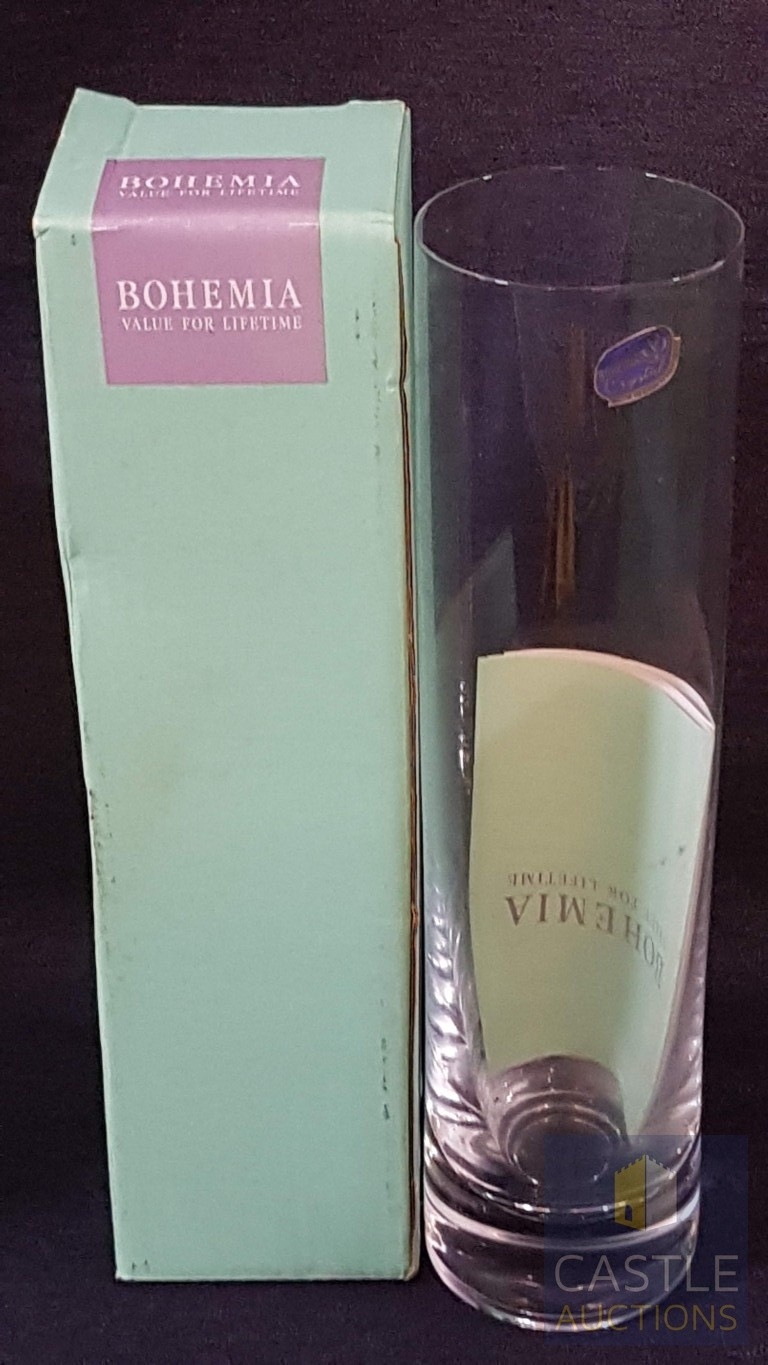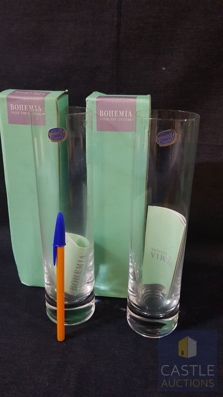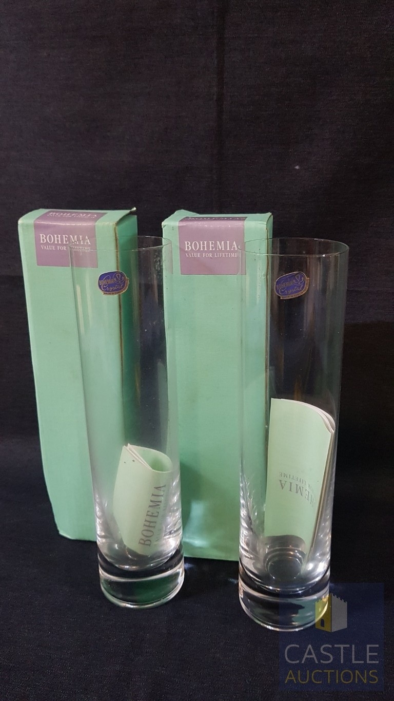 2 x Modern BOHEMIA Crystal Vase - Narrow Cylinder Shape, Made in Czech Republic (Approx. H: 24cm Ø: 6cm Each), Original Boxes, (2)