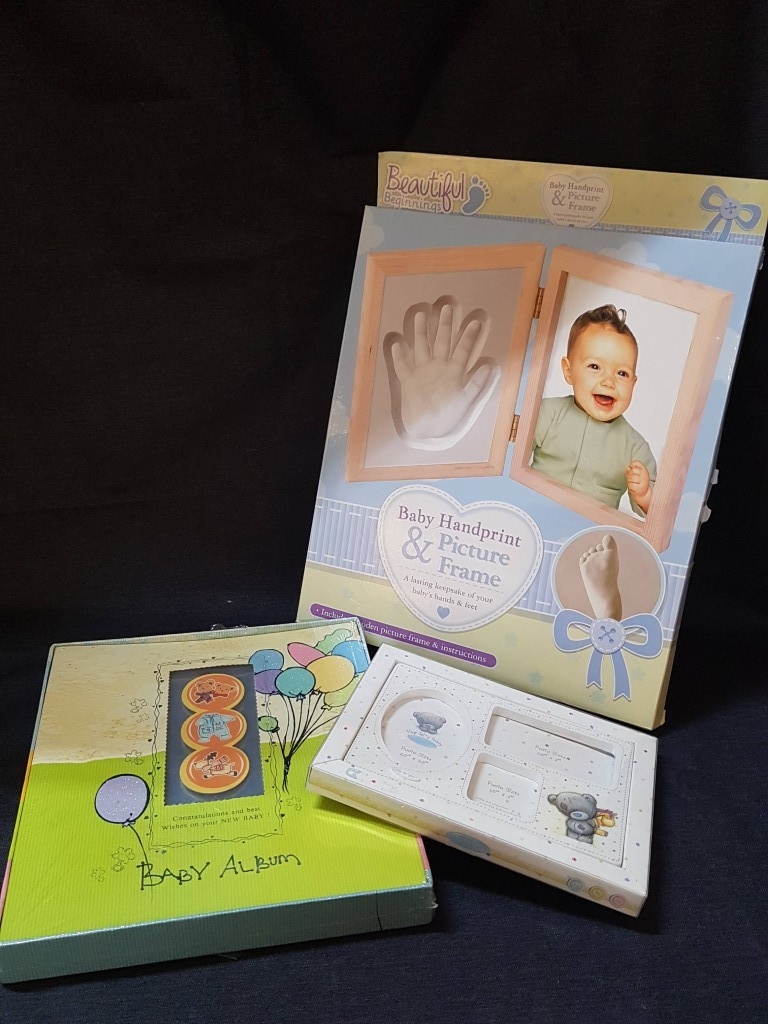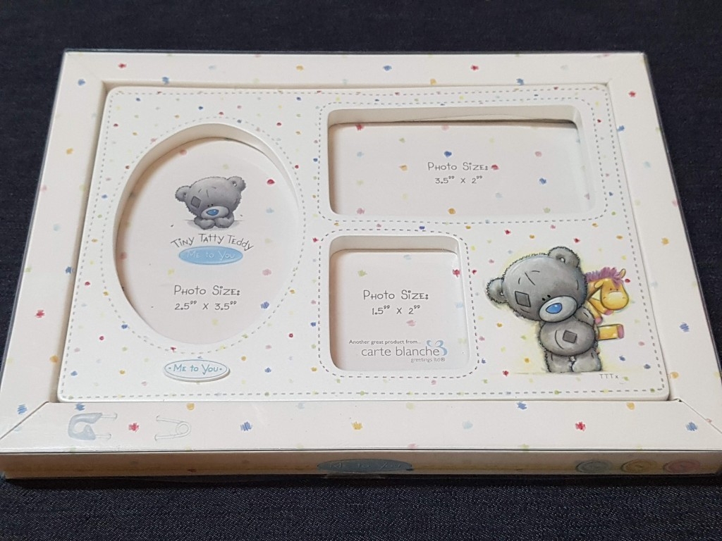 New Baby Born Gifts, 'Me to You Tiny Tatty Teddy Multi-aperture Photo Frame', 'Photo Album in New Baby Born Design' and 'Baby Handprint' (Kit), Un-Used, Boxed. (3)