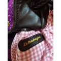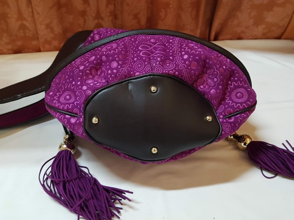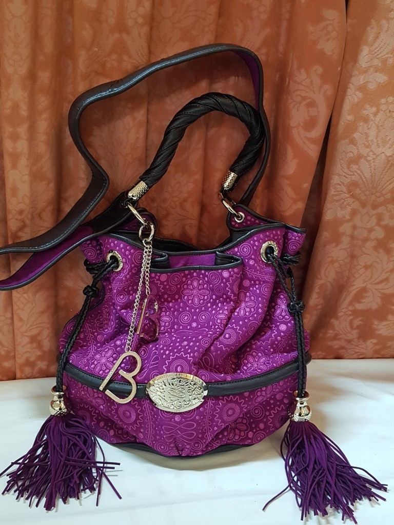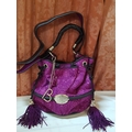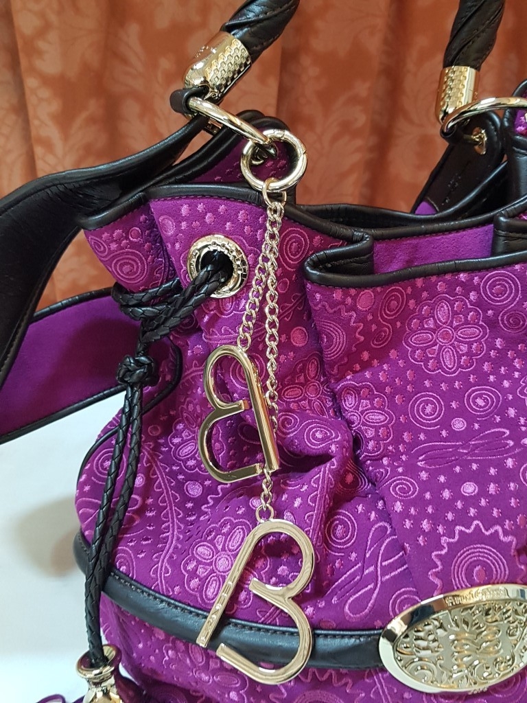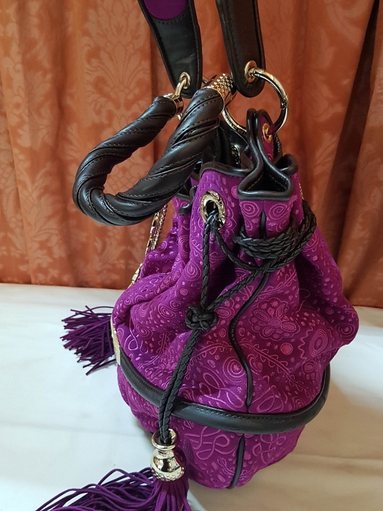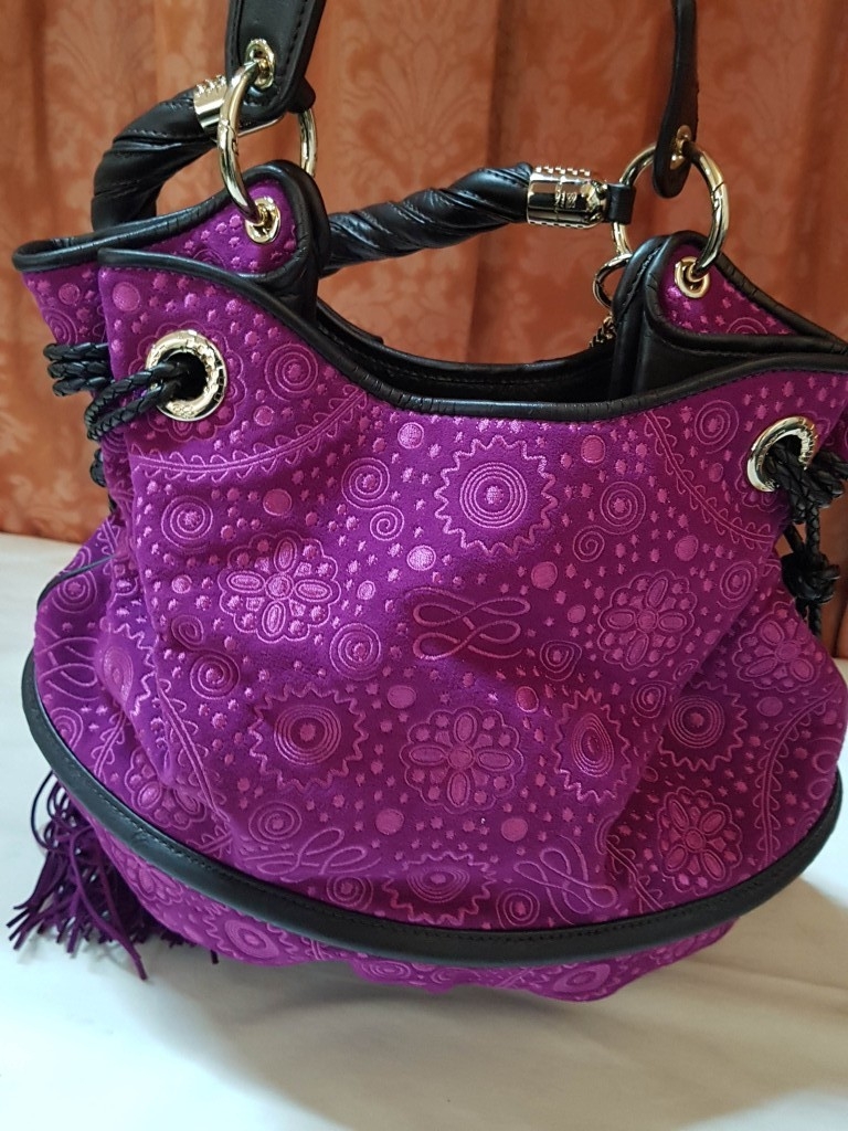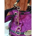 French Luxury Brigitte Bardot BB Lancel Fuchsia in Velvet Handbag/Crossbody Bag, Model: BB Bucket Bag (Wide Shoulder Strap,'Pochon' Style Bag, Booklet)
